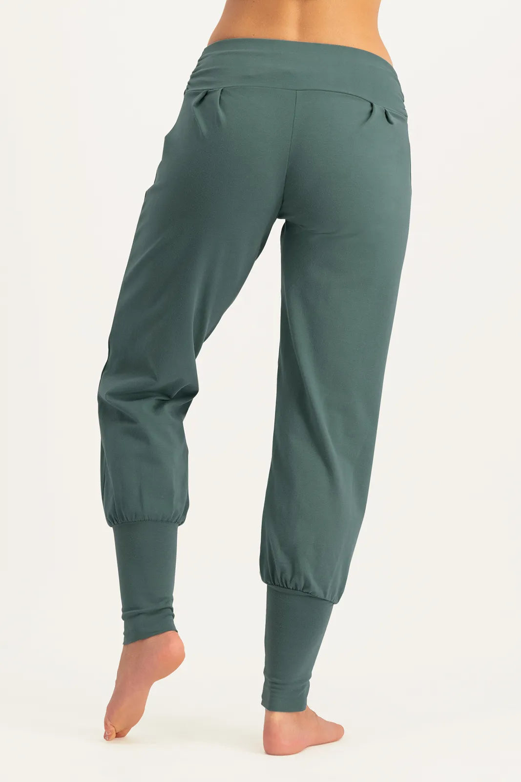 De Dakini is een losse yoga harembroek. Deze yoga pants hebben een fijne heupband met elegante plooien aan de zijkant. De dames yoga broek heeft fijne enkelcuffs, zo blijft de broek stevig op zijn plek zitten, welke asana je ook uitvoert.