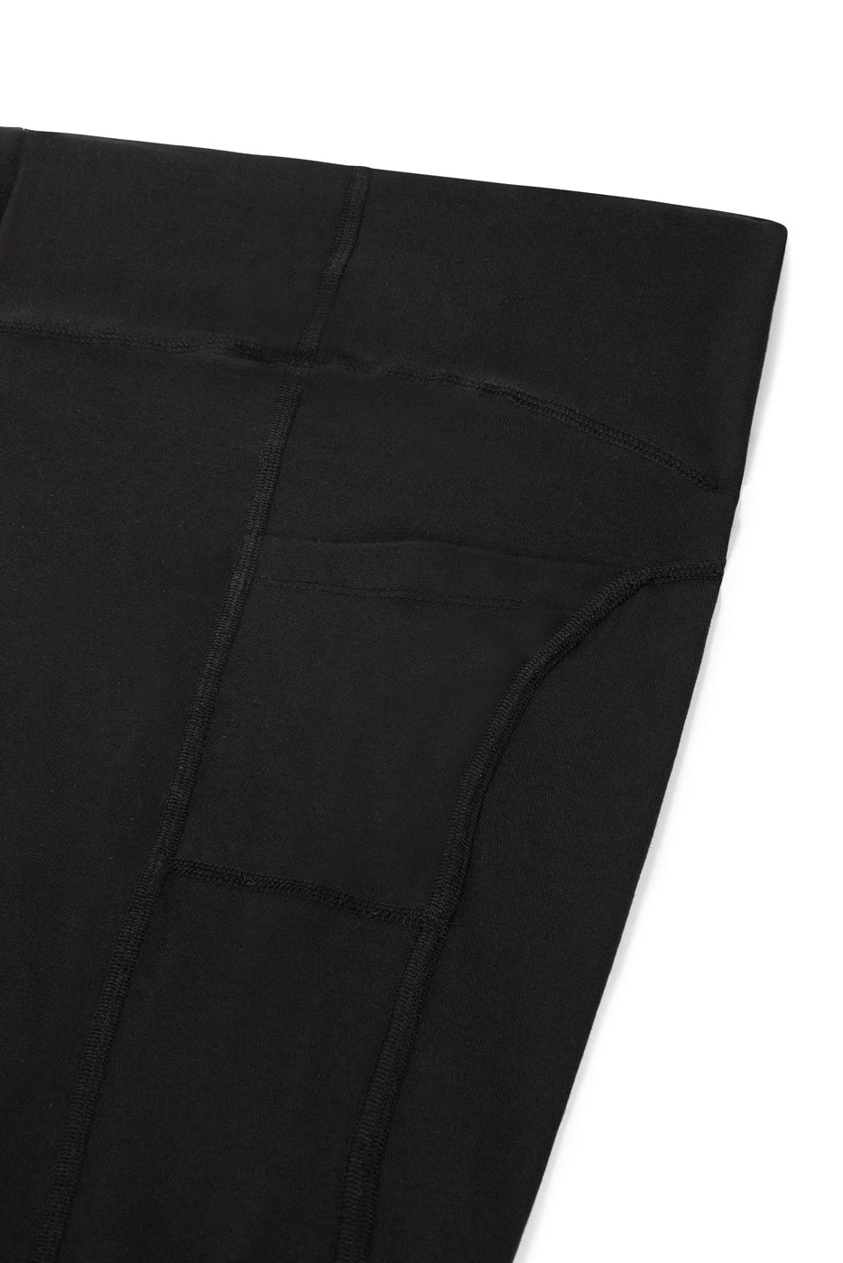 Tara Pocket Zwarte Yoga Legging is een high waist legging van biologisch katoen met zijzakken en sportieve siernaden. De ademende stof met dry-fit effect houdt je fris tijdens yoga of workouts.