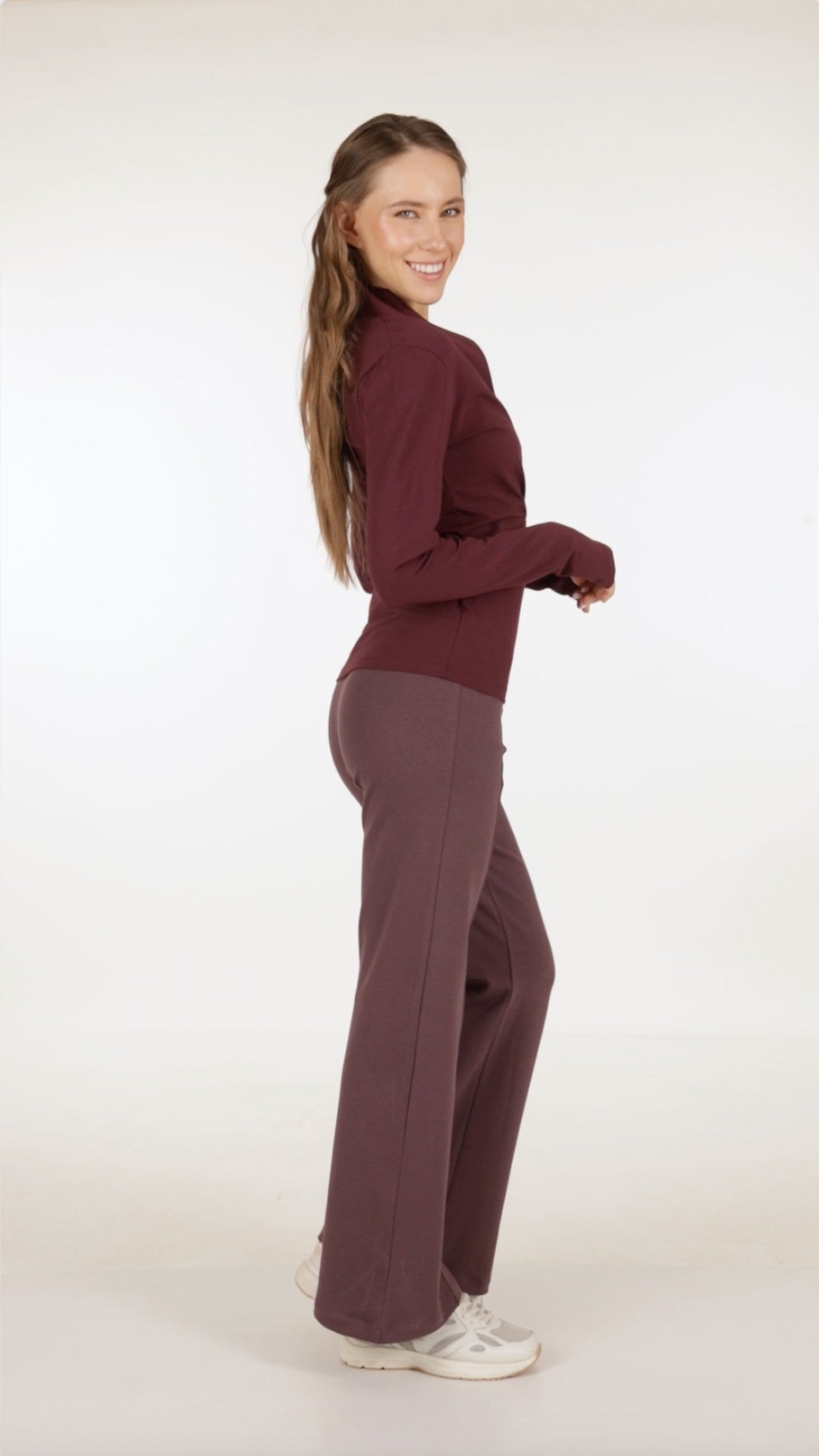 Deze flared yoga sport broek is gemaakt van een duurzame mix van lyocell, GOTS-gecertificeerd biologisch katoen en lycra. De stof voelt zacht en ademend aan en beweegt soepel met je mee bij elke houding. Dankzij de natuurlijke stretch is de Cayha broek geschikt voor verschillende yogastijlen en ook prettig om dagelijks te dragen.