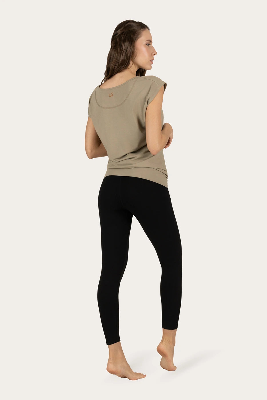 De Isara 7/8 legging is perfect voor yoga, pilates, barre of gewoon als comfortabele loungewear. De hoge tailleband met subtiel triangle detail aan de achterkant zorgt voor een vrouwelijke look, ook buiten de yoga- of pilatesstudio. Combineer met een cropped top voor een stijlvolle en bewuste outfit.