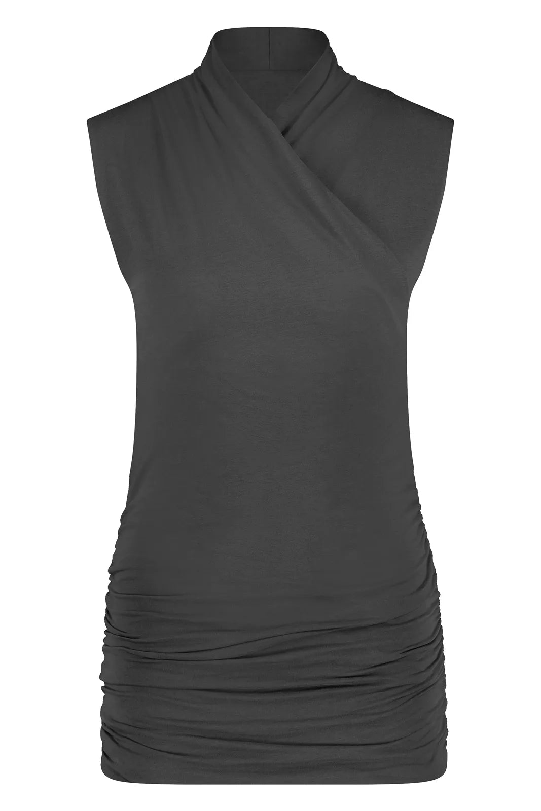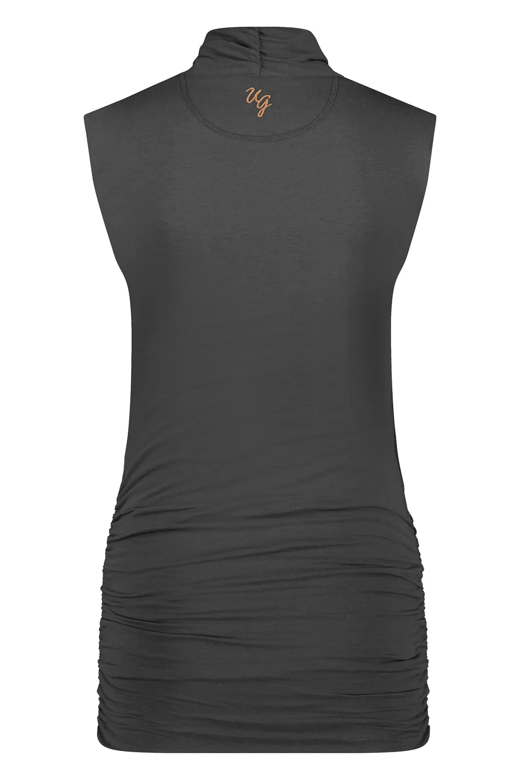 Tijdens rustigere yogavormen zoals restorative, hatha of yin yoga kun je de Good Karma lekker over je heupen en billen heen trekken. De top is namelijk extra lang gemaakt. Draag je de top wat hoger? Dan benadruk je de elegante plooidetails aan de zijkant.