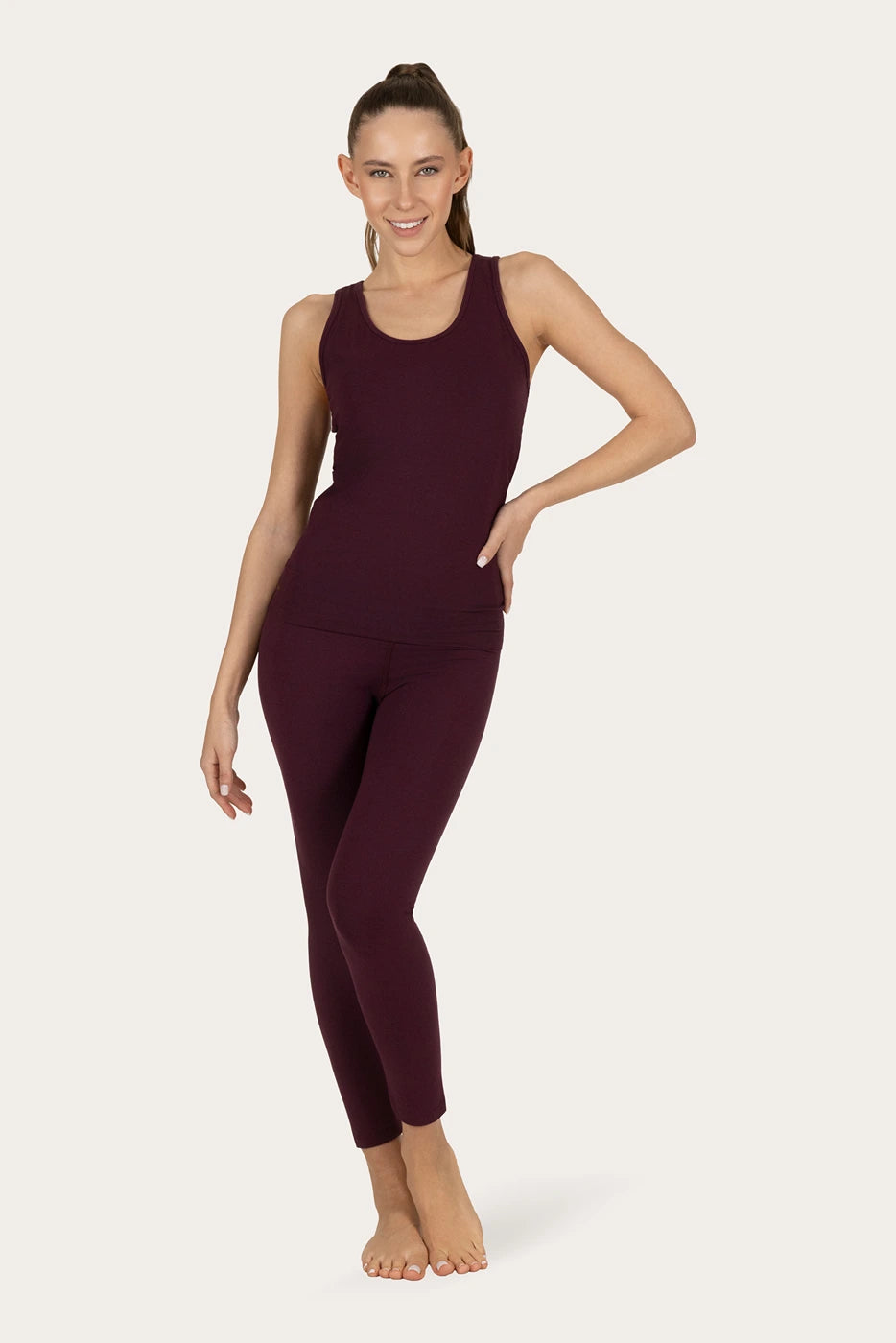 De Surya legging is gemaakt van een zachte, ademende mix van bamboe, biologisch katoen en lycra. Deze natuurlijke dry-fit stof voert vocht snel af en voelt koel en comfortabel aan op de huid. De subtiele lotus op de tailleband geeft de legging een verfijnde finishing touch en herinnert je eraan om met aandacht te bewegen.