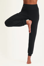 De Ojas yogabroek is een hippe yoga broek van Urban Goddess yoga wear die je eigenlijk wel naar iedere yogales aan kan. Deze broek heel licht en comfortabel. Van vinyasa, kundalini of een hatha flow or slow flow yogales, deze dry-fit pants is heerlijk. Het kruis van deze yogabroek is iets verlaagd, maar je kunt er rustig alle asana’s mee doen. Dat hebben we namelijk zelf uitgebreid getest. Ojas heeft dus wel iets weg van een moderne harembroek, zonder overdreven laag kruis.