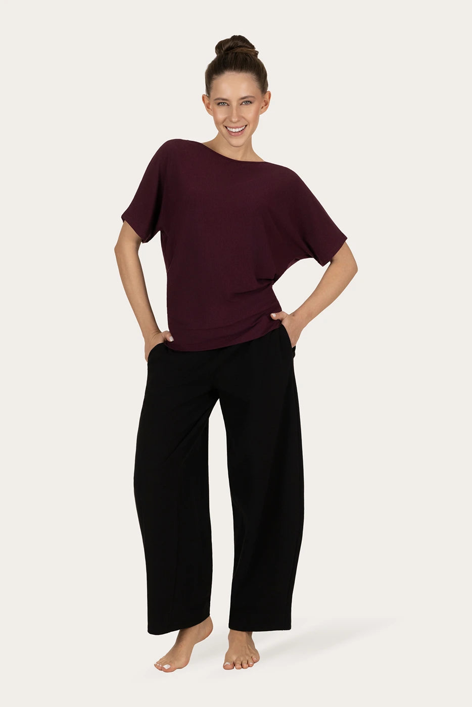 De batwing mouwen en soepele stof geven dit korte mouwen yoga shirt een vrij en ontspannen gevoel. De batwing yoga tee beweegt met je mee zonder te knellen en blijft mooi in vorm. Dankzij de ademende en antibacteriële eigenschappen van bamboe blijf je fris en koel, ook wanneer je practice iets intensiever wordt.