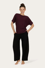 De Budhi Batwing Yoga Tee in de kleur Fig is een fijne keuze voor rustige yogamomenten, meditatie of een ontspannen dag thuis. Dit korte mouwen yoga shirt heeft een luchtige, losse pasvorm die prettig aanvoelt op de huid. De zachte mix van bamboe, biologisch katoen en een vleugje lycra zorgt voor comfort en natuurlijke stretch tijdens elke beweging.