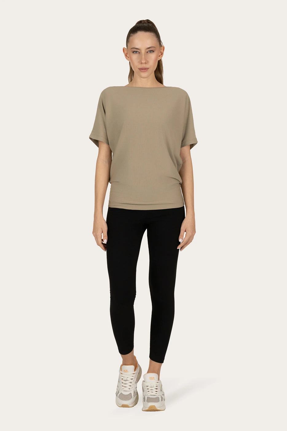De soepele stof, elegante halslijn en de trendy batwing mouwen geven dit korte mouwen yoga shirt een mooie uitstraling. De stof van deze bamboe yoga tee beweegt moeiteloos met je mee en blijft prettig zitten, zonder te knellen. Zo kom je full focus je practice door. Dankzij de ademende eigenschappen van bamboe blijf je fris, ook tijdens dynamische sessies of warme dagen.