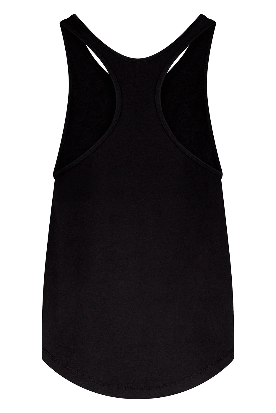 Het model is 1,80 m en draagt de Maya Loose Fit Yoga Tank in maat S.