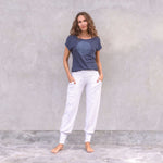 Dit yoga t-shirt heeft een hippe Om print en een losse pasvorm. Door de loose-fit stof kan je de dames yoga top gemakkelijk opknopen als hippe croptop. Het dames yoga shirt is gemaakt van 100% biologisch katoen (GOTS), wat zorgt voor een zachte stof.