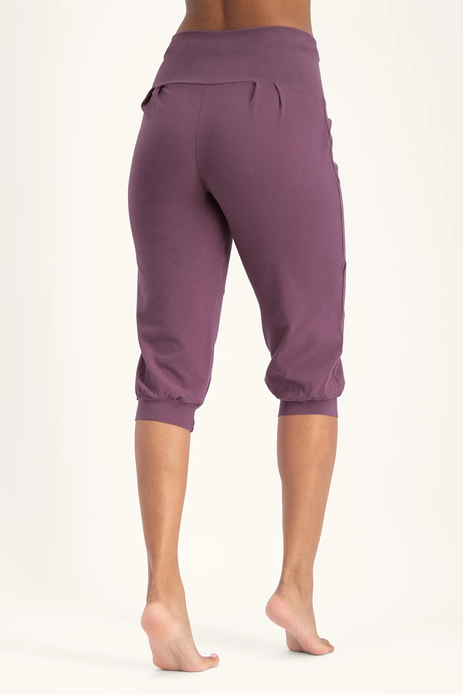 De Sukha Capri Harem Yogabroek in Mauve combineert comfort en duurzaamheid. Met een losse pasvorm, ademende stof van biologisch katoen en cuffs blijft hij perfect zitten. Ideaal voor yoga of casual dagen, en makkelijk te mixen met je favoriete tops!