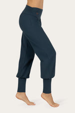 De pasvorm is relaxed maar vrouwelijk, met subtiele plooidetails op de heupband die zorgen voor een mooie uitstraling. De broek blijft prettig zitten tijdens bewegen en ontspannen. Combineer de Dakini yoga katoenen harembroek met een yoga top of oversized trui voor een comfortabele en stijlvolle look.