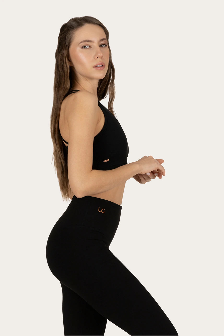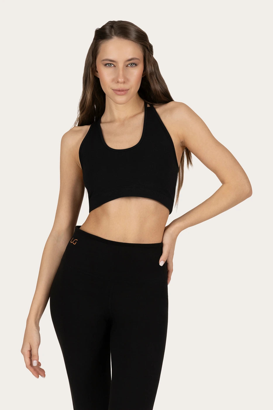 Draag de Lyrais solo voor een clean studiosilhouet of combineer haar met een luchtige yoga tee of wrap top zoals de Aurora Wrap Top van Urban Goddess. De soepele fit, ademende stof en elegante bandjes maken deze bra een veelzijdige basic die je makkelijk in elke outfit integreert.