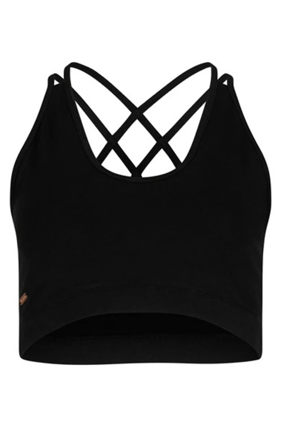 Zachte, ademende yoga sportbeha van bamboe-biokatoen met lichte tot medium support. Smalle bandjes, ingebouwde binnenbeha en een comfortabele fit voor yoga, pilates en daily movement.