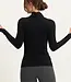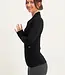 Het model is 1,80m en draagt de elegante longsleeve yoga top maat S.