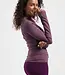 Het model is 1,72 m en draagt de lange mouwen yoga top in maat S.