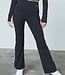 De zwarte flared yoga broek is gemaakt van 60% nylon en 40% elastaan. Deze soepele stof voelt zacht aan op de huid, biedt veel stretch en beweegt moeiteloos met je mee. Dankzij de hoge taille blijft de slim-fit yoga broek goed zitten, zodat jij je volledig kunt focussen op je practice.
