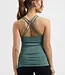 De top heeft een ingebouwde binnenbeha zonder cups, wat zorgt voor lichte ondersteuning zonder druk of knellende randen. Het strappy rugdetail met gekruiste bandjes geeft deze yoga tank een stijlvolle uitstraling én extra draagcomfort. Dankzij de natuurlijke temperatuurregulatie van bamboe blijft de stof fris aanvoelen, zelfs als je lichaam opwarmt tijdens je practice.
