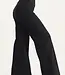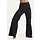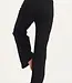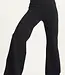 Het model is 1,72 m en draagt de Maeve zwarte yoga broek met wijde pijp van katoen in maat S. Materiaal: 90% biologisch katoen en 10% lycra