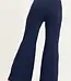 Het model is 1,72 m en draagt de Maeve wijde yogabroek met midwaist van katoen in maat S. Materiaal: 90% biologisch katoen en 10% lycra