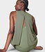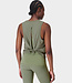 Draag de losse tanktop zoals hij is of knoop hem aan de achterkant voor een aansluitende fit. Dit flexibele ontwerp geeft je de vrijheid om je look en pasvorm aan te passen aan je activiteit.