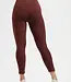 De warme Marron bruintint geeft deze legging een vrouwelijke, aardse uitstraling. Het geborduurde lotusdetail op de tailleband staat symbool voor groei, balans en innerlijke kracht. Combineer de legging met een bijpassende yoga top of draag haar casual met een oversized sweater.